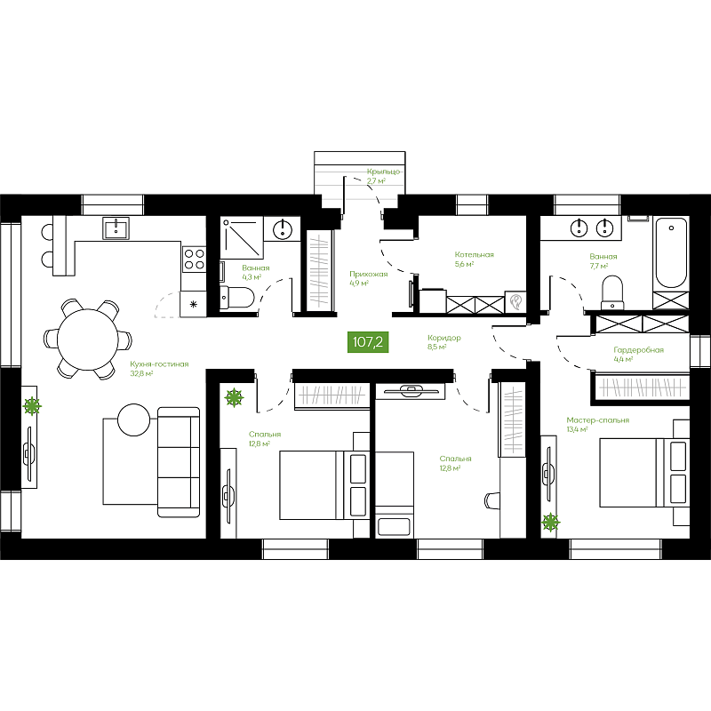 4 спальни