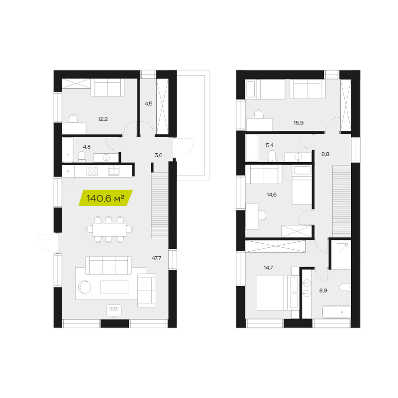 • Планировки от 54 м²