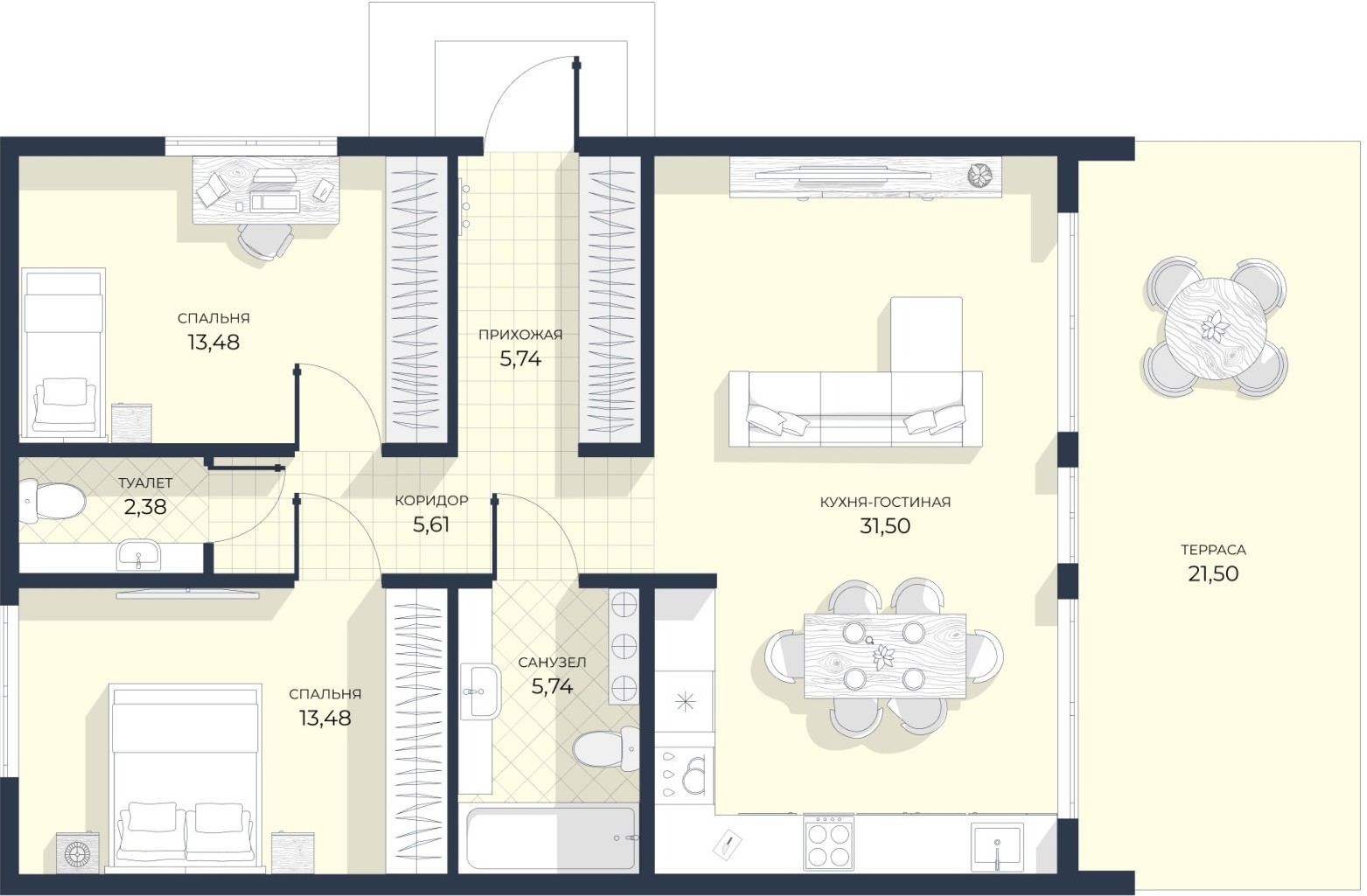 2 спальни 2 санузла Кухня-гостиная Терраса