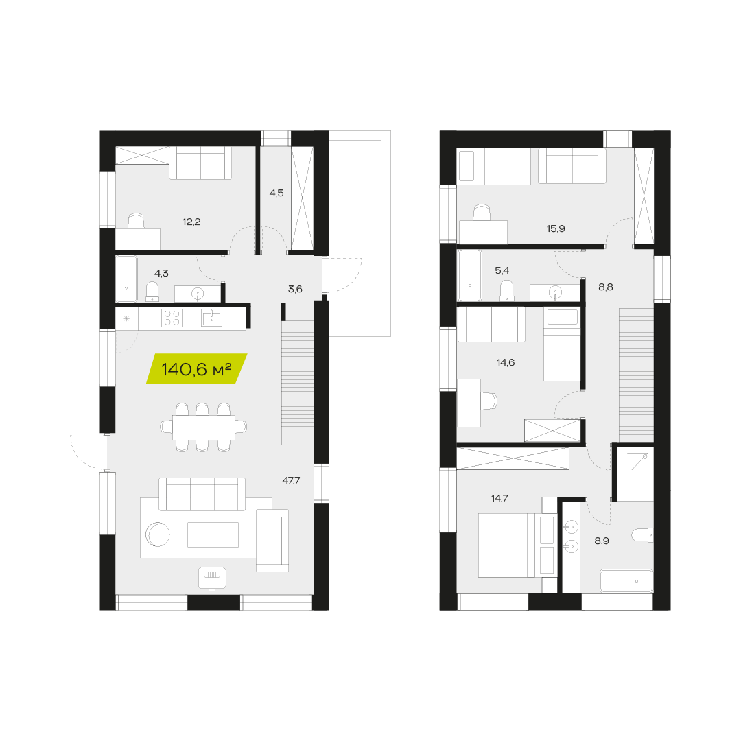 2 спальни 2 санузла Кухня-гостиная Терраса